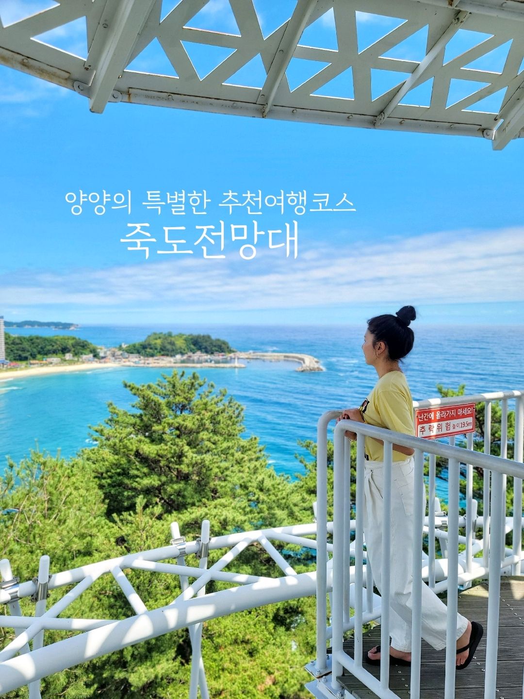 물론 전망대에서 주변을 바라보는 것만으로도 감동을 느끼기에 충분하다. 일정에 여유가 있다면 꼭 산책로를 따라 걸어보세요. 하조대, 등대, 정자, 애국가가 차례로 멋진 풍경을 선사합니다. 양양 여행코스로는 죽도정, 휴유암, 맹해변이 인근에 있다. 2. 강원도 양양군 죽도정 인간항길 24시간 운영 : 24시간 입장료 : 없음