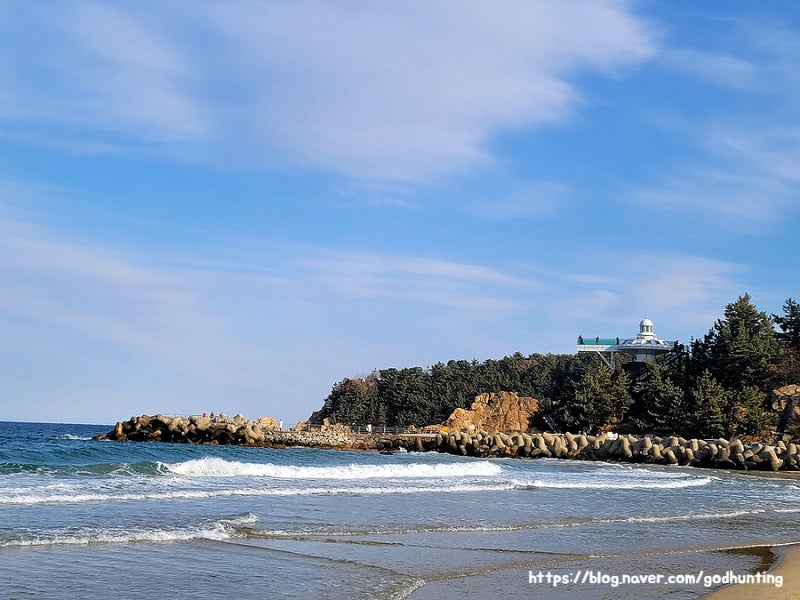 또한, 파빌리온 바로 위에 전망대가 있습니다. 올라가면 죽도해수욕장과 인구해수욕장의 풍경이 한눈에 들어온다. 그래서 그런지 아주 인기가 많은 곳이었는데요. 그러나 바다 쪽에도 산책로가 있습니다. . 부채바위, 신선바위, 선녀탕, 주절암, 청허대도 독특한 풍경을 선사하니 가볍게 산책하기 좋을 것 같았어요. 날씨가 많이 춥지 않으면 서핑도 볼 수 있었어요. 양양여행코스 하조대, 휴유암, 인구해수욕장과 가깝습니다. 3. 강원도 양양군 광진2길 휴휴암 3-16