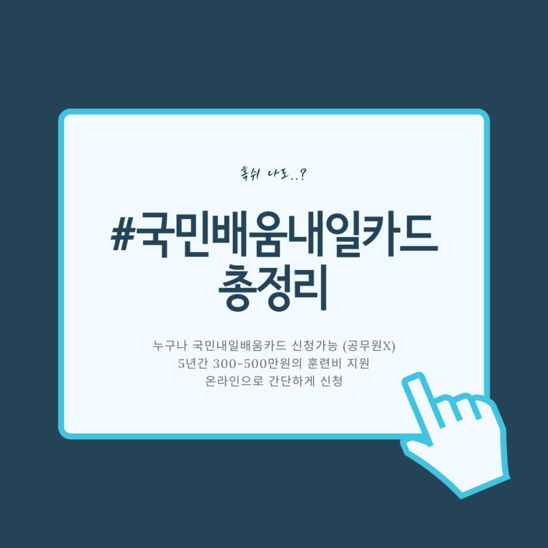 국민내일학습카드는 국민이 스스로 직업능력개발훈련을 실시할 수 있도록 훈련비를 지원하는 카드이다. 사회가 급격하게 변하면서 개인도 이를 체감하고 있는데, 자기계발 비용을 지원해주는 시스템이 아주 좋다. 그렇게 생각해요. 그렇다면… 모두가 자격이 될까요? 알아 보겠습니다.