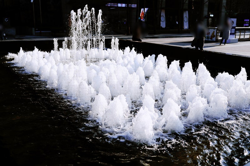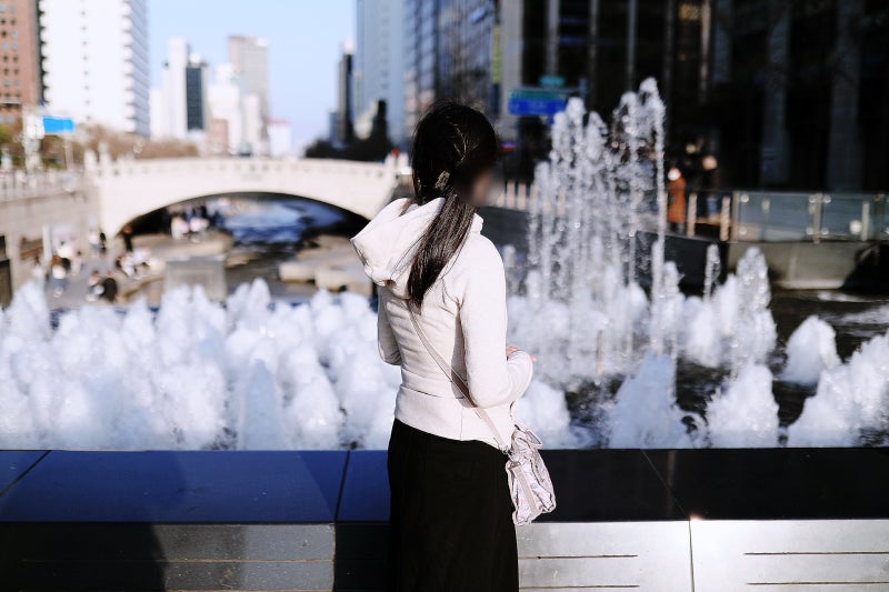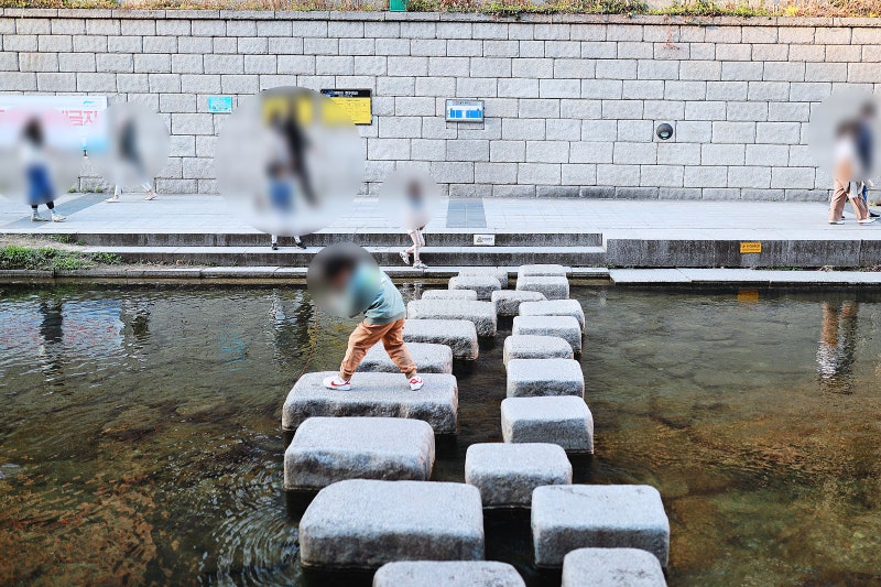 제가 방문했을 때는 아직 좀 더웠기 때문에 청계천에 발을 담그고 더위를 식히는 사람들을 자주 볼 수 있었습니다. 자세히 봐도 물이 정말 깨끗해요.