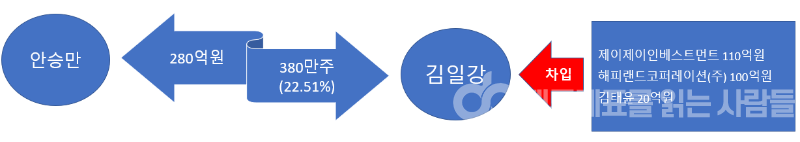 인수 후 지분을 50%까지 늘릴 계획이다. 경영권 분쟁으로 지연되고 있는 신약개발회사 인수는 안승만 회장의 유상증자 참여로 특수관계자 포함 지분 27%로 안정적인 경영권을 확보했다. 나는 그것을 확장하려고 노력하고 있습니다